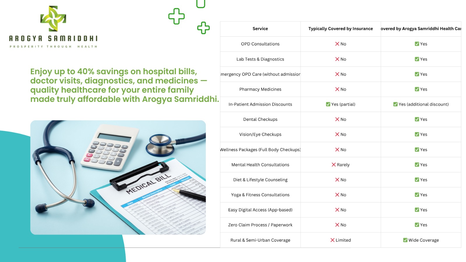 How does Arogya Samriddhi Healthcard Saves you cost at every scheduled and unscheduled visit for medical and wellness purposes?....